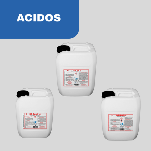 Detergentes ácidos para quitar sales calcáreas en las diferentes superficies equipos, lavados CIP (Clean In Place) para decapados, DS-Sarriret, DS-CIP II, etc.